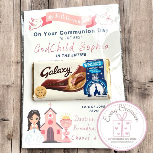 Personalised First Communion A4 Card with Galaxy Bar – For Girls & Boys