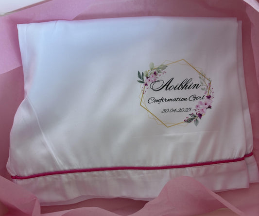 Personalised White & Pink Satin Girls' Pyjamas – Perfect for Communion or Confirmation
